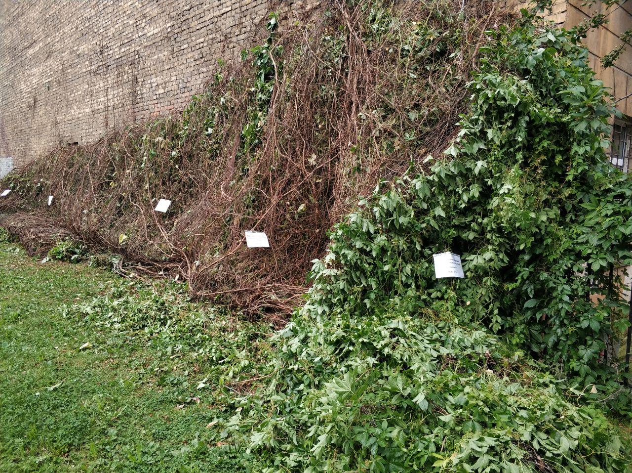 Еще мы общались с садово-парковым предприятием «Центральное». История растения такова: виноград появился в 2003 году вместе со сквером на Благоева. Так как девичий виноград не стоит у них на обслуживании, они не могут нам ничем помочь. В общем-то это нормальный ответ — главное, чтобы не срубили, и мы с ними об этом переговорили. Позвонили также мастеру участка и сообщили, что косьбы здесь быть не должно.