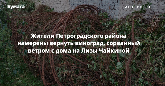 Вот как жители Петроградской стороны спасают сорванный со стены виноград
