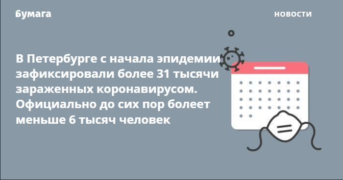 Актуальные новости о распространении COVID-19 в городе читайте в рубрике «Бумаги» «Коронавирус в Петербурге».