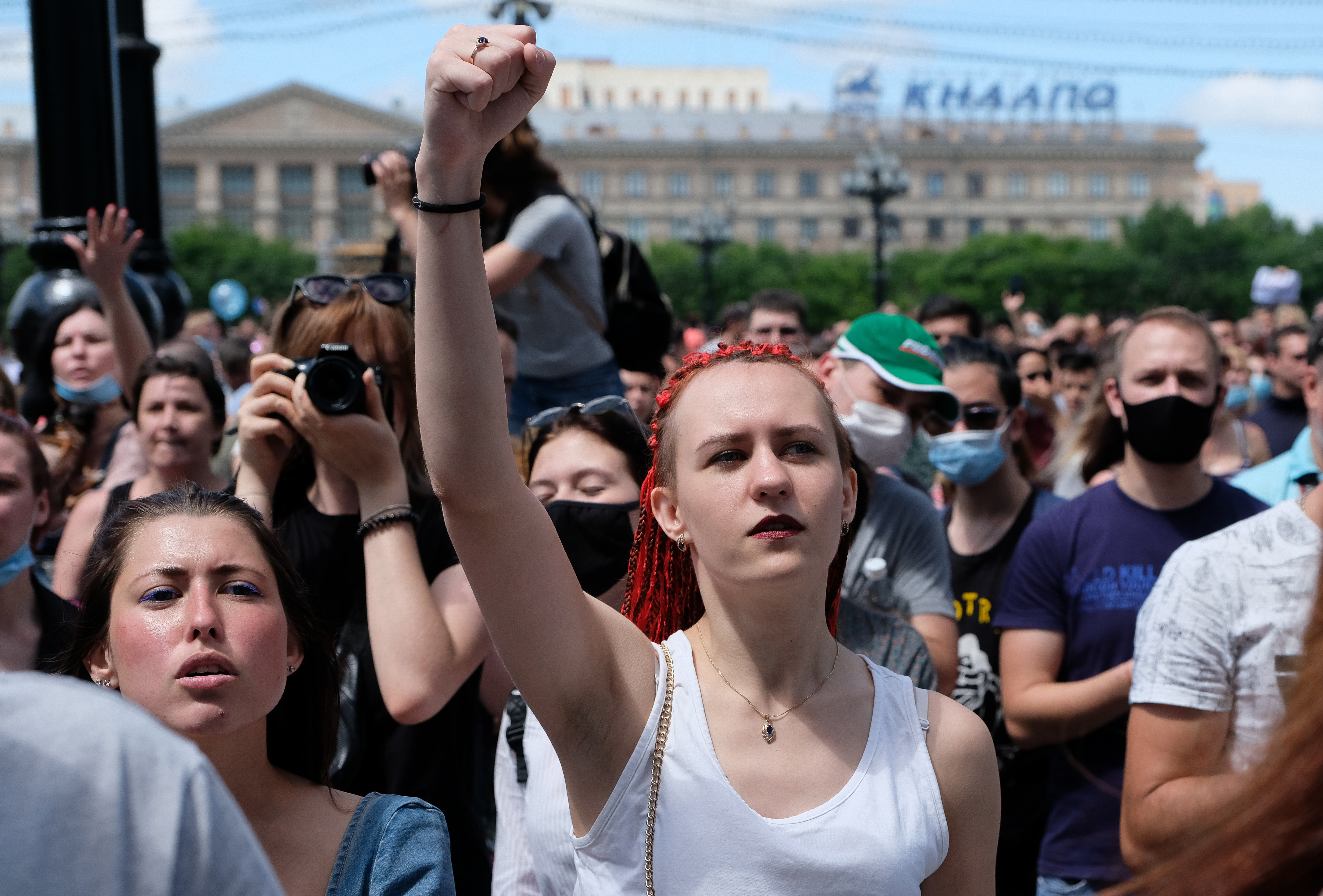 - После задержания избранного губернатора края Сергея Фургала в Хабаровском крае и соседних регионах больше двух недель проходят массовые митинги и пикеты. Чаще всего митингующие требуют для губернатора "справедливого суда в регионе". С 22 июля после назначения нового врио главы края Михаила Дегтярёва митингующие потребовали отставки президента России Владимира Путина.