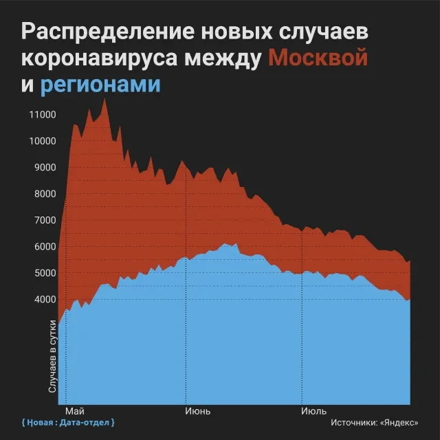 «Все, что вы видите [в официальной статистике], — это возвращения на работу. В Москве работает огромное количество иногородних работников, и сейчас они возвращаются. И если Москва уже как бы перегорела, то регионы все еще горят, там динамика чуть-чуть запоздавшая. <...> И это нельзя назвать второй волной».