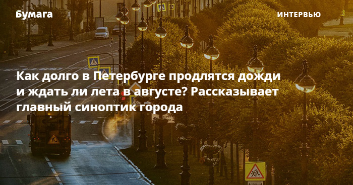 «Бумага» поговорила с главным синоптиком Петербурга Александром Колесовым о том, какой будет погода в августе.