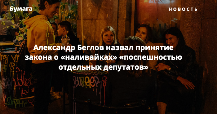 Губернатор Петербурга Александр Беглов в эфире телеканала «78», отвечая на вопросы горожан, назвал принятие закона о «наливайках» «поспешностью отдельных депутатов» и заявил, что в закон внесут «соответствующие изменения».