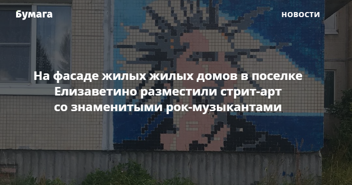 На нескольких панельных домах в поселке Елизаветино в Ленобласти разместили пиксельный стрит-арт с портретами рок-музыкантов — от Виктора Цоя и Михаила Горшенева до Сида Вишеса. Фотографии зданий в инстаграме опубликовал петербуржец с ником goodwin45.