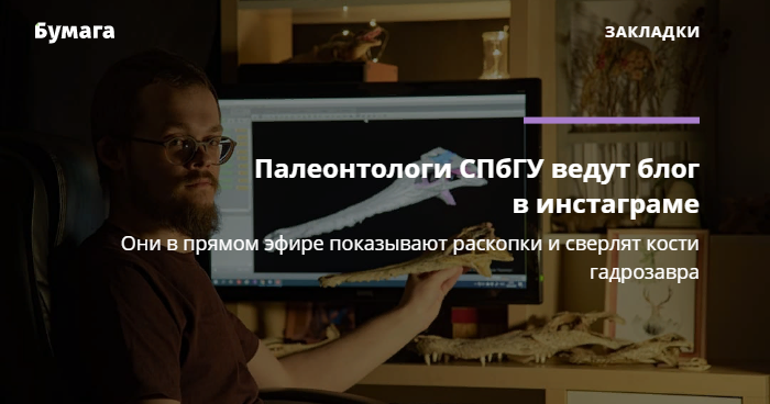 Ученые-палеонтологи СПбГУ ведут блог в инстаграме. В нем они показывают видео и фото с раскопок, берут интервью у коллег, а также рассказывают интересные факты про динозавров.