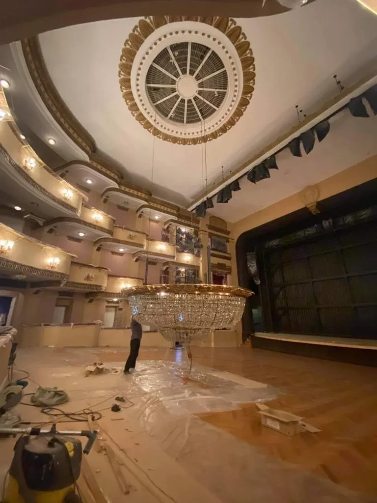 Самый деятельный и продуктивный директор российских столиц и провинций Кирилл Крок в паузе решил избавить Вахтанговский от вековой пыли. В зале и за кулисами сейчас все вздыблено: моют огромную хрустальную люстру, до блеска полируют штанкеты, огненным фонтаном льется сварка, снуют рабочие. Пространство за сценой пульсирует жизнью, пространство перед театром уверенно видоизменяется: здесь монтируют гранитный постамент для памятника Евгению Вахтангову. Он будет открыт 15 сентября (авторы: скульптор Александр Рукавишников и сценограф Максим Обрезков).