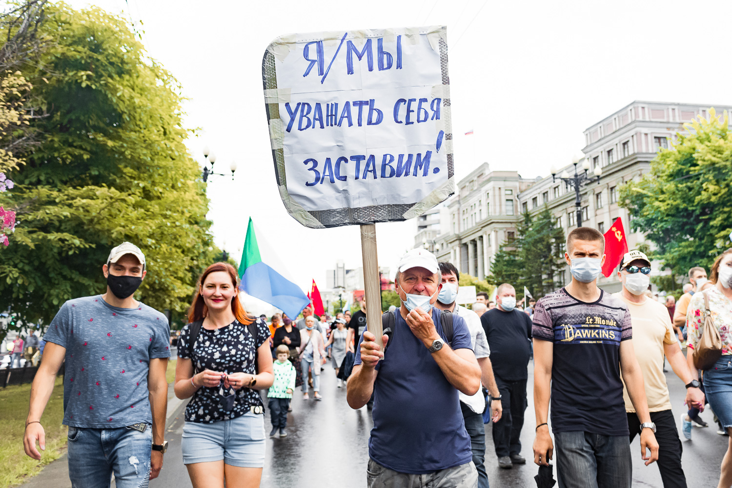 – Вообще, пусть они сами думают, какую чушь несут. Какие деньги, если после Фургала началась реально новая история России – ни за кого так не выходили. Наверное, мы его уже не увидим – не выгоден он Кремлю. А задержали сейчас немногих пока. Но у всех есть семьи, работа, а многие с открытыми лицами в гуще событий. Этого, на мой взгляд, делать не стоит, – заключает Добрый хабаровчанин, поправляя маску и плотнее надевая непроницаемые черные очки.