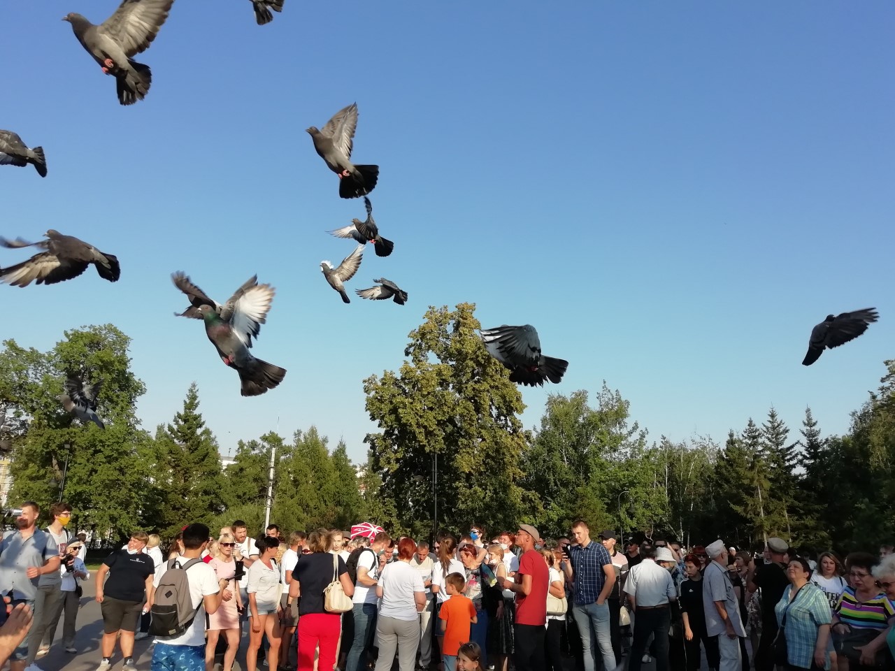 15:57 1.8.2020В Омске, отмечающем в эти выходные День города, участники акции в поддержку Хабаровска собрались в сквере имени Дзержинского у фонтана – больше 100 человек. Как таковых организаторов у мероприятия нет, а призывы прийти накормить голубей семечками распространялись через соцсети.