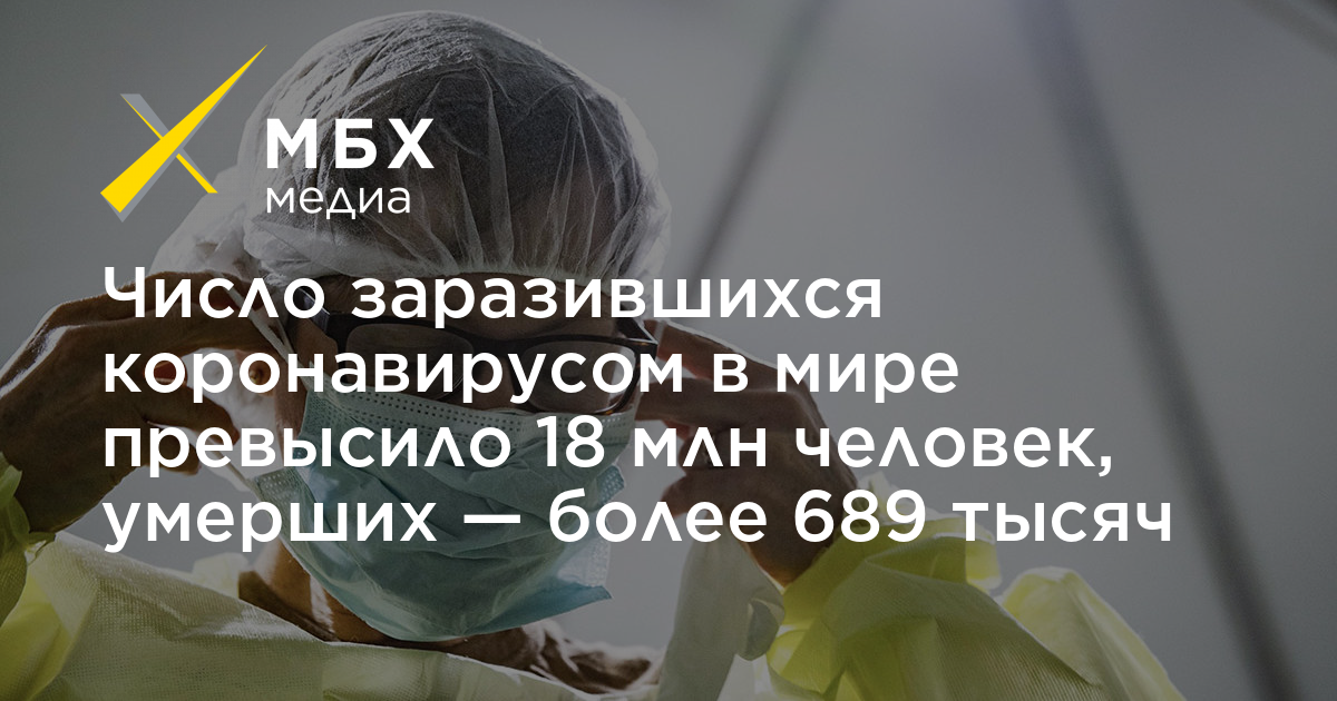 С начала пандемии коронавируса во всем мире инфекцией заразились более 18 млн человек, число умерших превысило 689 тысяч, свидетельствуют данные университета Джонса Хопкинса.