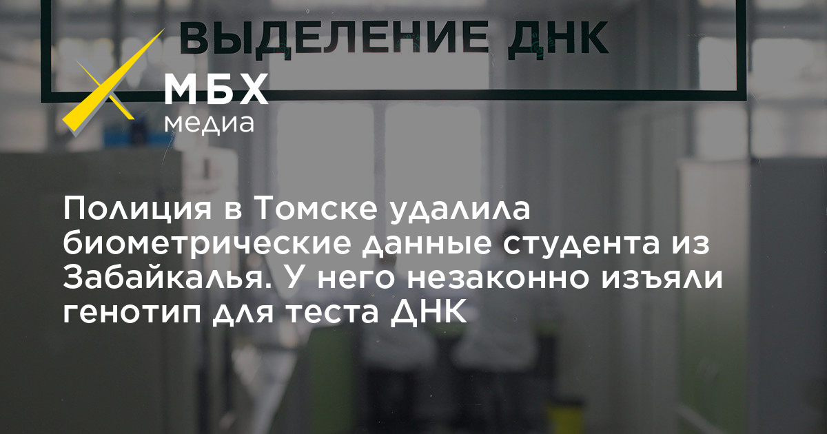 Экспертно-криминалистический центр УМВД по Томской области удалил персональные биометрические данные студента из Забайкальского края Алексея Ц. (имя изменено), которые были получены без его согласия. Об этом «МБХ медиа» сообщил координатор «Правозащиты Открытки» Алексей Прянишников.
