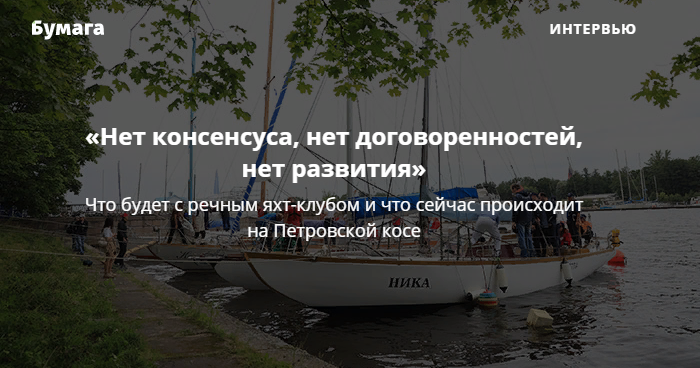 — Вопросов много. Что нам делать, кто может стоять на Петровской косе и пользоваться этой водой, почему нам нужно поднимать суда, как долго вся эта история может продолжаться, что за слухи о студенческом яхт-клубе (КИО в письме к Ленинградской федерации профсоюзов говорил о планах организовать Студенческий яхт-клуб и просил организацию передать под эту цель часть территории — прим. «Бумаги»)? Все эти вопросы мы хотим сформулировать и задать властям города.