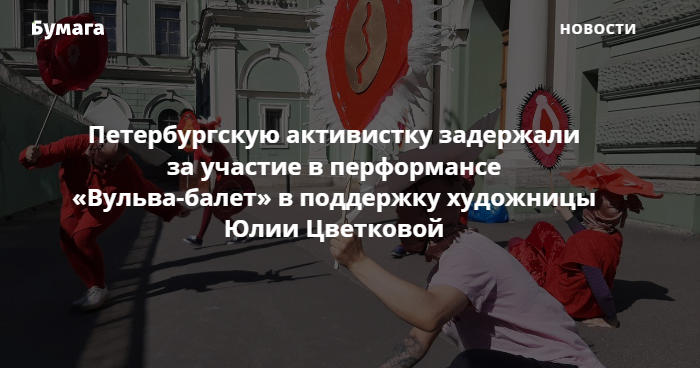 Дарью Апахончич оштрафовали на 10 тысяч рублей за участие в перформансе «Вульва-балет», сообщила Варя Михайлова.