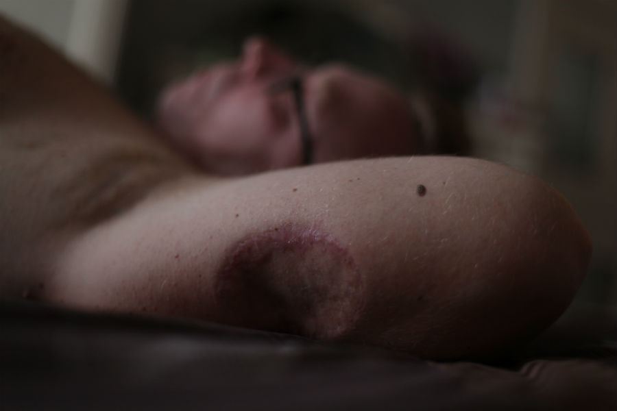 Оперировали меланому в онкодиспансере нашего города. Иссечение было настолько глубоким и широким, что пришлось закрывать дефект кожей, взятой с бедра. Параллельно удалили и лимфоузел под мышкой — обычно в лимфоузлах такого типа могут появиться первые метастазы. Впечатления от онкодиспансера у меня остались хорошие, было лишь сожаление, что многие пациенты, такие же, как и я, обращаются за помощью на довольно поздних стадиях, когда меланома уже проникает в глубокие слои дермы.