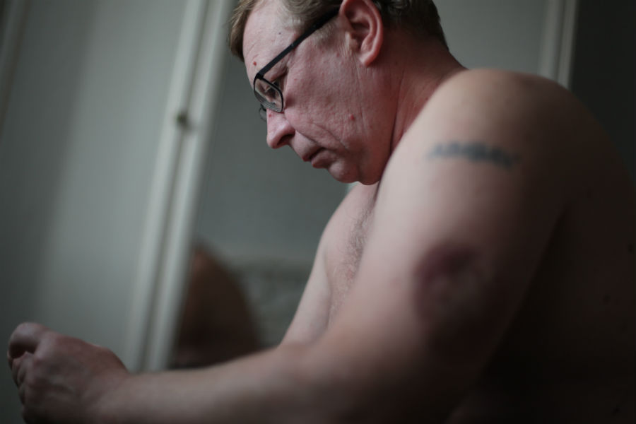 Дмитрий БельскийФото: Ольга Кретинина Раны заживали хорошо, и уже через две недели я был дома. По протоколу лечения меланомы химиотерапия мне была не нужна. Была нужна иммунотерапия. По рецептам лекарство можно получать в аптеке. Высокодозная иммунотерапия — та еще штука. После нее тебя выкручивает во всех направлениях. То в жар, то в холод, мысли всякие дурацкие лезут в голову. В инструкции к препарату указано, что во время лечения могут возникать такие побочные эффекты, как лихорадка, боли, озноб, депрессия, повышенная утомляемость. Иногда нарушаются функции печени и сердца. Каждый день уколы делает мне жена, поддерживает меня.