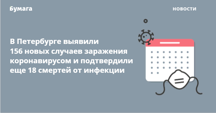 В Петербурге 156 новых случаев заражения коронавирусом. «Бумага»