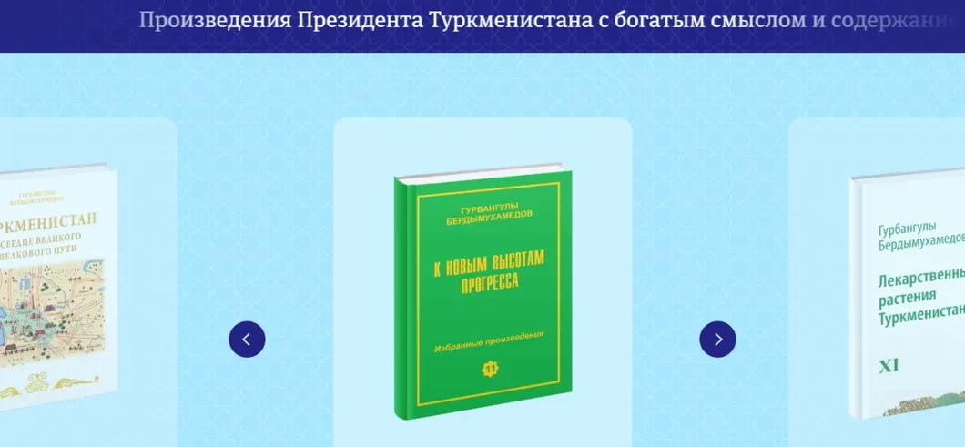 Первая часть — это сборники выступлений Бердымухамедова по разным поводам, сведенные воедино для истории вообще и для запоминания, а то и зазубривания истин, которые глаголет Гурбангулы Ясно Солнышко. Такие сборники, в свою очередь, делятся на два типа. Это могут быть массивные 600-страничные в среднем фолианты, где материалы из выступлений идут сплошным текстом, а предисловие занимает до половины всего объема книги (как, например, в книге «К новым высотам прогресса. 11-й том»). Читать это очень тяжело, даже несмотря на то, что на сайте заботливо все тексты сделаны именно в формате листалки. Но именно в этих книгах можно увидеть, каким языком президент Туркменистана общается со своими подданными. Это слегка кастрированный новояз оруэллианской Океании: без двухминуток ненависти, но с прямо противоположными значениями слов.