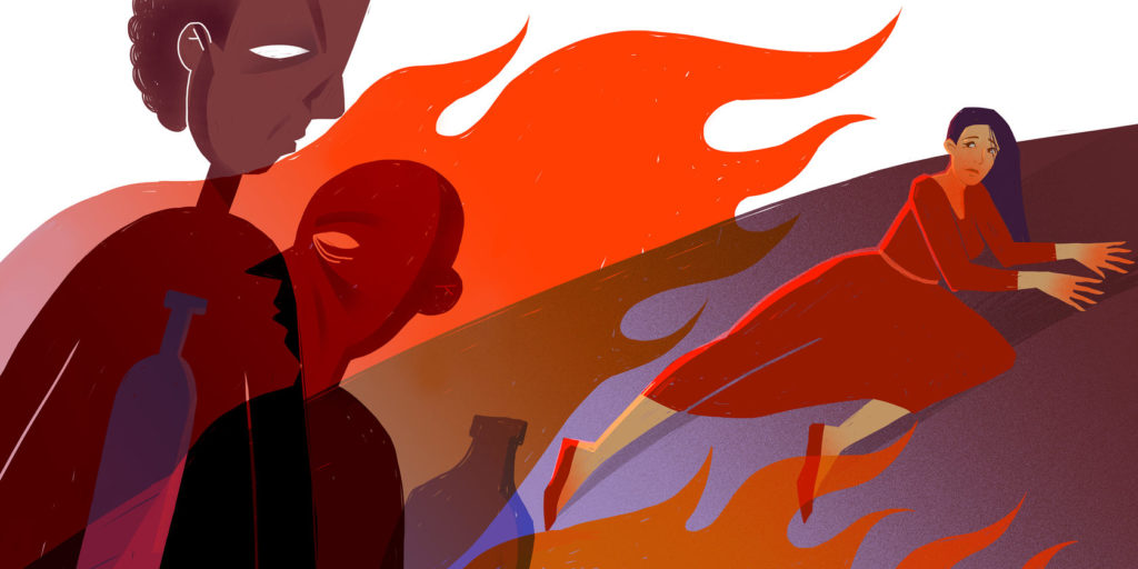 «Когда папа выпивал, в него как будто вселялся зверь, — вспоминает Анна Краснова (имя героини изменено по ее просьбе). — Он сам исчезал, а на его месте появлялось жуткое существо с узкими глазами. Дважды у него была белая горячка, и тогда он разговаривал с воздухом — ему мерещились родственники, которых не было рядом, он ругался с ними, выяснял отношения. Когда он пил, он становился злым и страшным, без остановки ругался матом — слова как будто лились наружу, и этот поток невозможно было остановить».