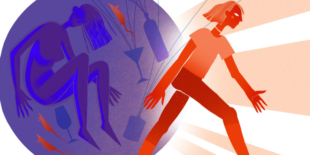 К четвертому курсу у Алины появились серьезные гинекологические проблемы. Она начала принимать лекарства и уже не могла пить как раньше. Постепенно она стала отдаляться от подруг, занялась спортом. Тревожность не уходила, но на трезвую голову было проще разобраться в собственных мыслях. Алина стала много думать о родителях и о сестре. «Я вдруг осознала: то, что происходило в моем детстве, — ненормально, — говорит она. — Это было ужасно, а все вели себя как ни в чем не бывало». Тревога и напряжение от этих воспоминаний стали невыносимыми, сильно хотелось выпить.