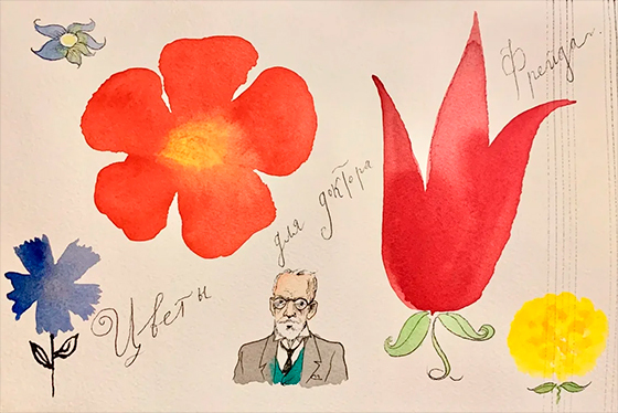 © Павел Пепперштейн Павел Пепперштейн. Цветы для доктора Фрейда. 2020. Бумага, акварель, ручка В сентябре в Мультимедиа Арт Музее, Москва (МАММ) начнут работу восемь выставок «Фотобиеннале-2020» и итоговая выставка акции «Цветы врачам».