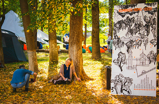 © Ярославна Парубова На фестивале «Хомяков home». 2019Справа — план усадьбы со зданием кампанилы — И если речь зашла о героях, то есть еще один, литературный, созданный гением Лескова тульский персонаж — Левша. Он как-то присутствует в музее? Какие у вас на него виды в перспективе?