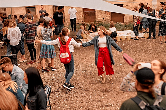 — Активно реконструировался до карантина, сейчас — вынужденный перерыв. Во всяком случае, у нас готова вся проектно-сметная документация, и мы собираемся успеть сделать часть работ летом-осенью этого года. Во дворе мы уже проводили фестивали и концерты. Упомянутая тобой «Cartoonная ночь» благополучно прошла в прошлом году среди развалин на самодельной сцене. В будущем мы планируем активнее использовать пространство двора и для своих, и для партнерских проектов. Это ведь самый центр города. Двор, кстати, уже популярен у романтически настроенной молодежи — иногда настолько, что хочется этих романтиков разогнать. У нас и здесь есть свои достопримечательности. На большой спасенной нами березе — «Луна» Леонида Тишкова, а на старом брандмауэре — пульсирующая кардиограмма города Марины Звягинцевой. Но самый первый художественный объект — это работа тульской художницы Лены Лузгиной «Хрен обыкновенный», выполненная на 20-метровом замечательно ржавом заборе.