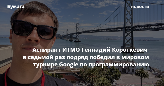 Аспирант ИТМО Геннадий Короткевич в седьмой раз подряд победил в мировом турнире по программированию Google Code Jam. Об этом сообщает пресс-служба Университета ИТМО.