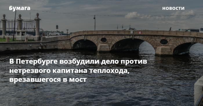 По версии следствия, ночью 2 августа пьяный мужчина проводил прогулочную экскурсию на теплоходе «Афалина» и врезался в правую опору Прачечного моста. Три пассажира получили телесные повреждения, но вред здоровью они не причинили.