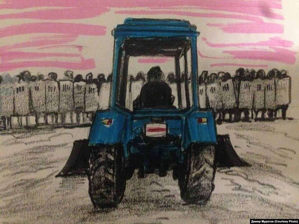 Художник из Омска Дамир Муратов отреагировал на протесты в Белоруссии, участники которых не согласны с официальными результатами выборов президента. Его рисунок опубликован на странице художника в фейсбуке.