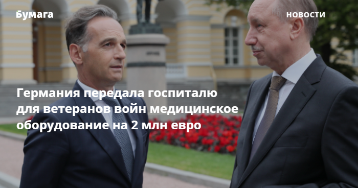 Германия передала медицинское оборудование госпиталю для ветеранов войн в Петербурге в качестве поддержки блокадников Ленинграда. Об этом «Бумаге» рассказали в пресс-службе Смольного.