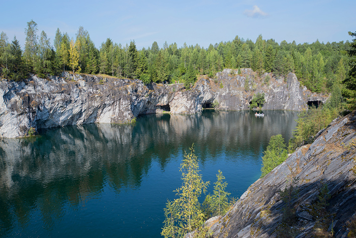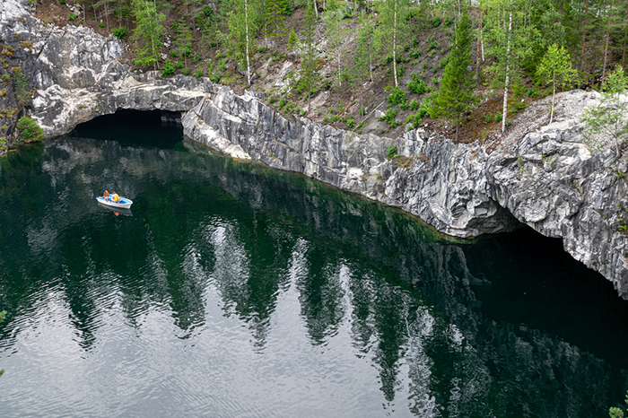 Одна из главных достопримечательностей Карелии — парк с мраморными скалами и озерами. Здесь можно, например, прокатиться на лодке или на зиплайне, прыгнуть с тарзанкой, заняться дайвингом и заказать подземную экскурсию — изучить мраморный каньон изнутри. В «Рускеале» есть пешеходные тропы для прогулок и смотровые площадки.
