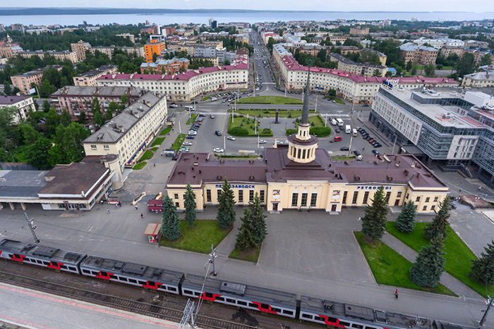 Скоростной поезд «Ласточка» идет до Петрозаводска около пяти часов, отправляясь с Ладожского вокзала. Из Петербурга в Петрозаводск также можно доехать на поездах дальнего следования, курсирующих по этому маршруту: в них доступны спальные вагоны, купе и плацкарт.