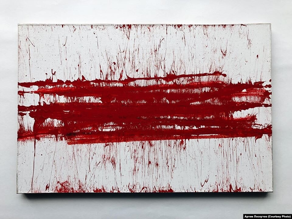 Картина называется "Беларусь", она выполнена красной акриловой краской на холсте в технике "дубинопись", сообщил художник. В соцсети Лоскутов разместил ролик, где показано, как создавалась картина.