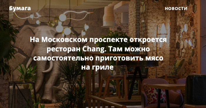 На Московском проспекте откроется ресторан Chang