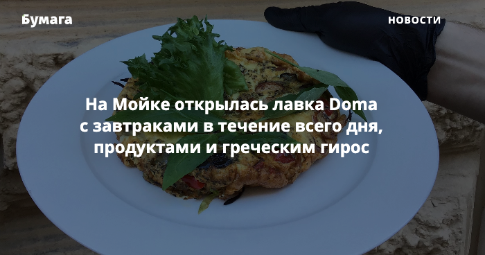 На углу набережной реки Мойки и переулка Гривцова, 2 открылась новая лавка DOMA с завтраками в течение всего дня, продуктами и греческими гирос. Об этом «Бумаге» сообщили создатели проекта.