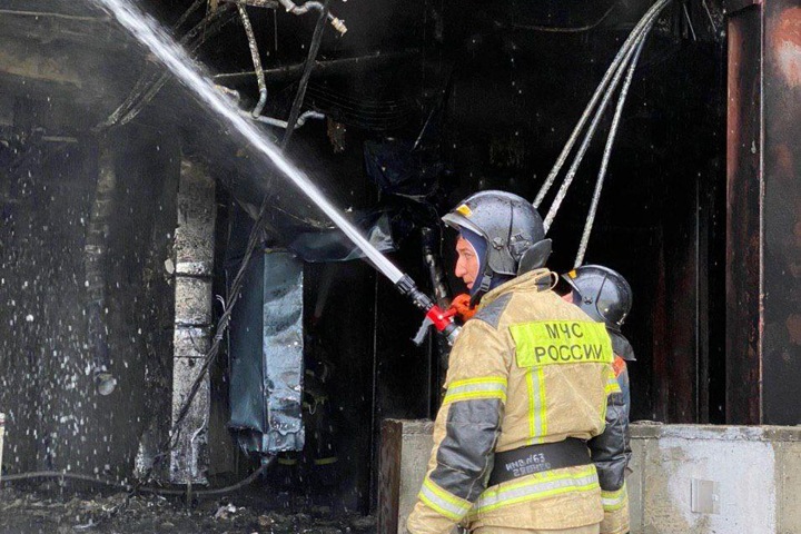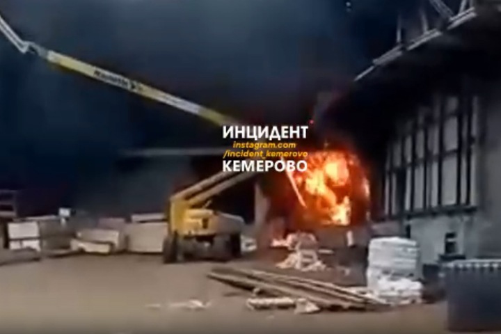 Судя по еще одному видео, опубликованному очевидцам в соцсетях, пожар начался прямо внутри объекта. Рядом стоит строительная техника.