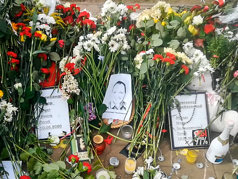 В субботу тысячи людей собрались на месте гибели Александра Тарайковского у станции метро "Пушкинская" в Минске, чтобы почить его память. Народный мемориал буквально завален цветами, проезжающие автомобили сигналят в знак поддержки. При вынесении гроба с телом Тарайковского собравшиеся у ритуального зала опустились на одно колено. Погибшего проводили под аплодисменты, лозунг "Жыве Беларусь" и духовный гимн "Магутны Божа".