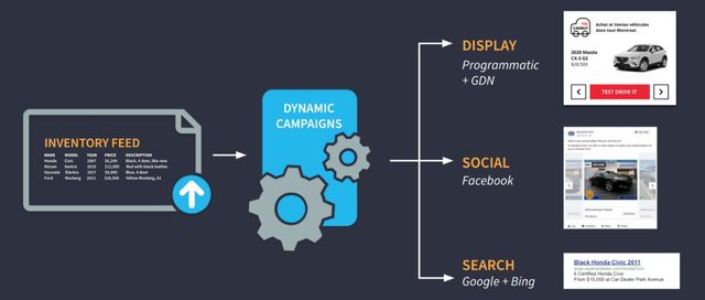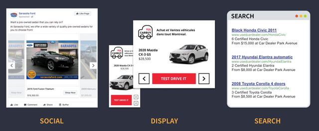 Начнем с определения. Кампании с динамическим инвентарем генерируются автоматически и основываются на данных, указанных в фидах инвентаря, такие как модель, год выпуска, страна производитель, б/у или новая, цена, номерной знак и т.д. Эти переменные данные являются динамическими для каждого отдельного пользователя и такие объявления появляются в поисковой и медийной сетях.