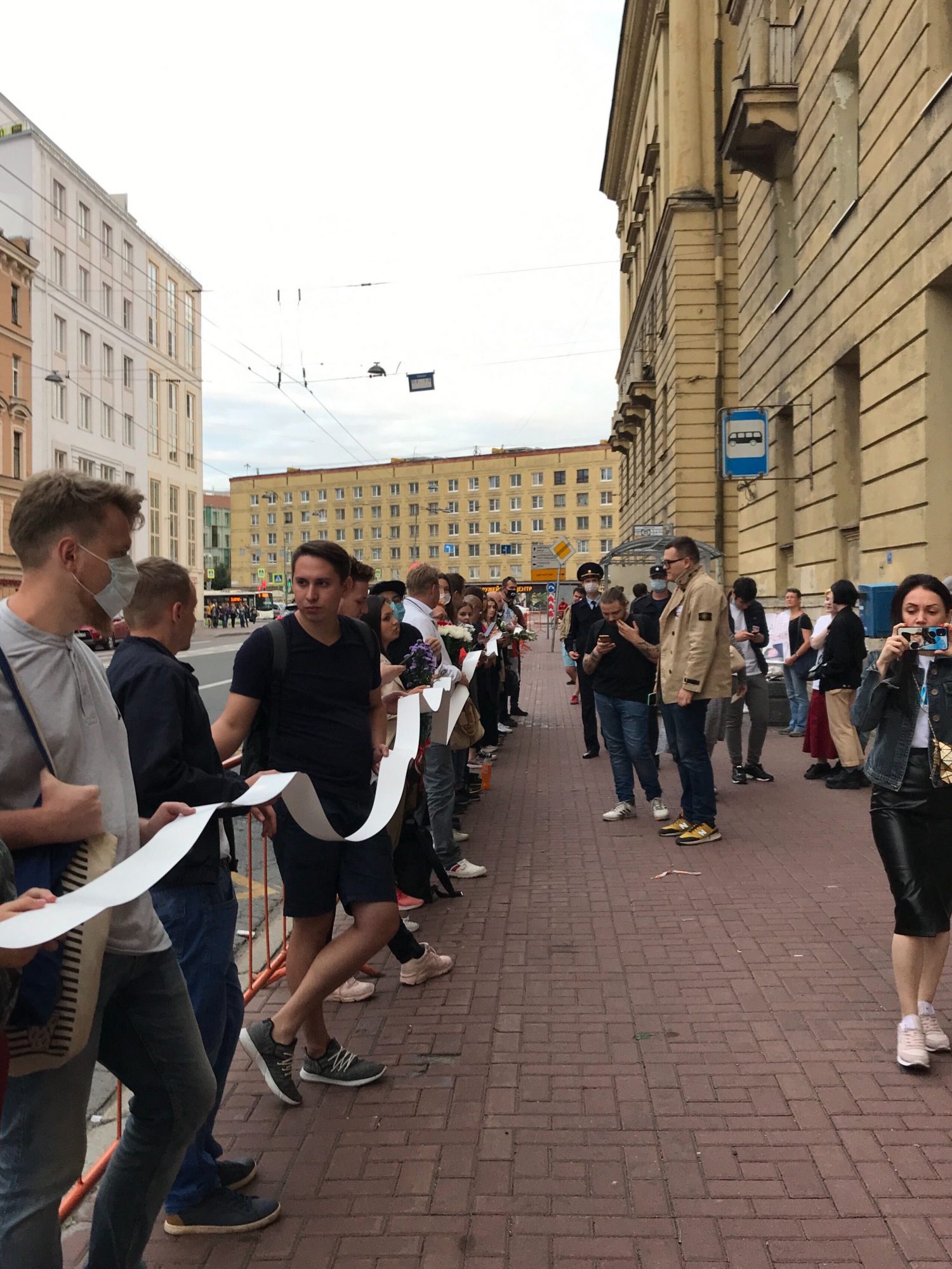 После выборов президента Беларуси 9 августа в Петербурге ежедневно проходят акции солидарности с белорусскими протестующими.