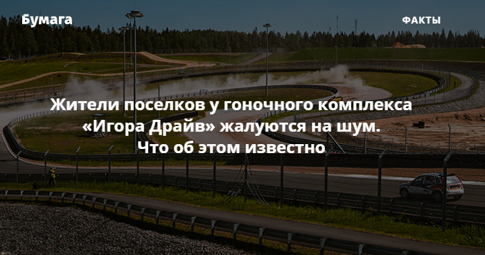 Жители поселков Орехово, Сосново, Иваново и других населенных пунктов в Приозерском районе Ленобласти жалуются на шум от гоночного комплекса «Игора Драйв». Сообщения об этом появились в соцсетях как минимум в мае 2020 года. Летом, когда площадка заработала в полную силу, жалобы стали массовыми.