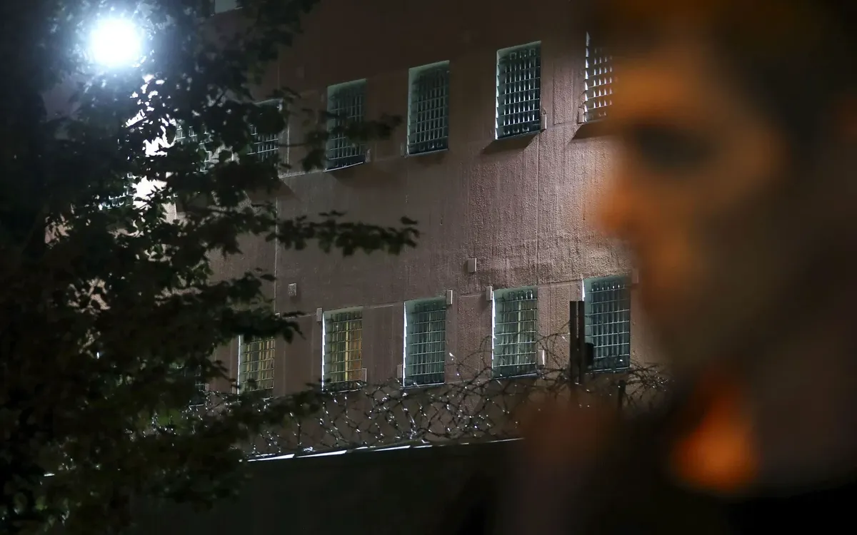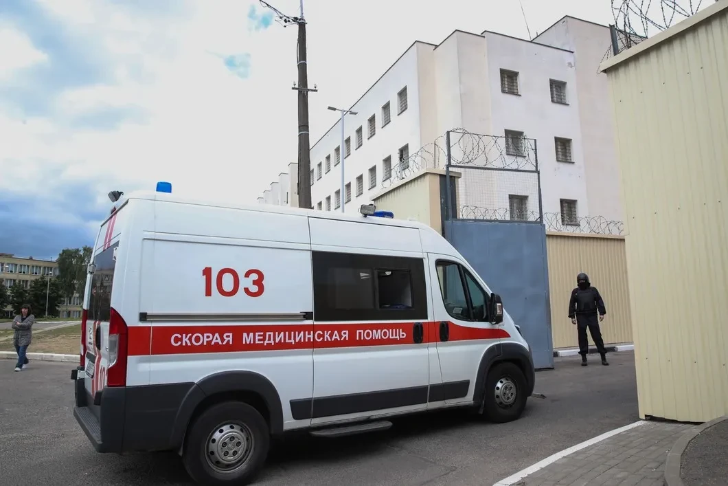 Машина скорой помощи заезжает на территорию ИВС. Фото: Наталия Федосенко / ТАСС