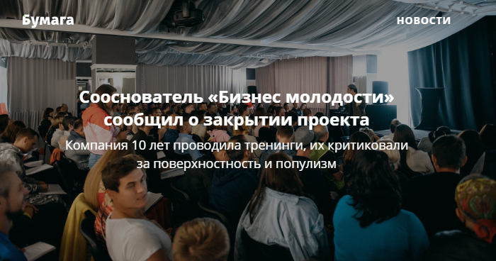 Сооснователь «Бизнес молодости» сообщил о закрытии проекта