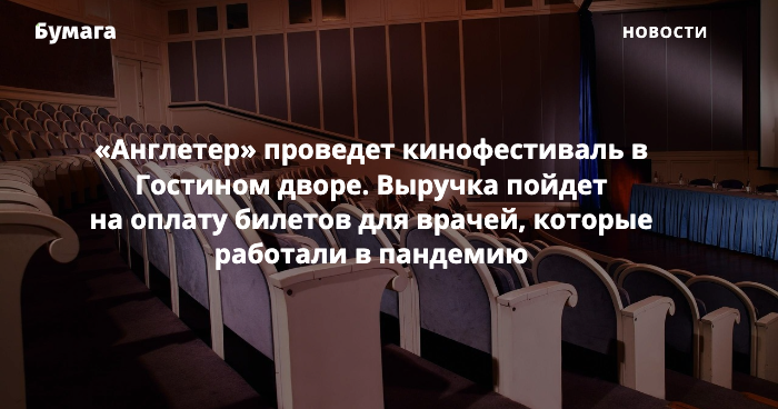 В последние выходные августа кинотеатр «Англетер» проведет фестиваль в Гостином дворе. Все вырученные средства пойдут на оплату билетов в кино для петербургских врачей, которые работали с больными COVID-19. Об этом «Бумаге» рассказал основатель кинотеатра Станислав Ершов.