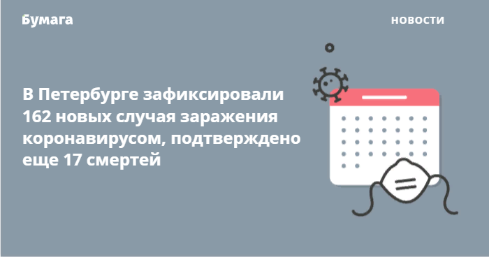 Актуальные новости о распространении COVID-19 в городе читайте в рубрике «Бумаги» «Коронавирус в Петербурге».
