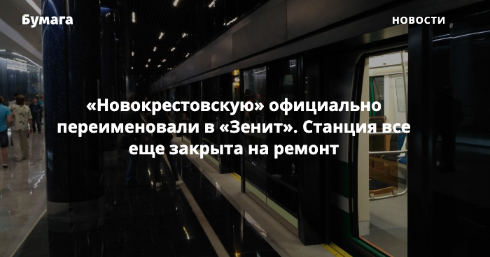 Станцию «Новокрестовская» переименовали в «Зенит»