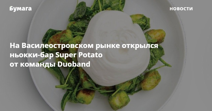 Команда Duoband открыла на Василеостровском рынке ньокки-бар Super Potato. Об этом сообщается на странице заведения в инстаграме.