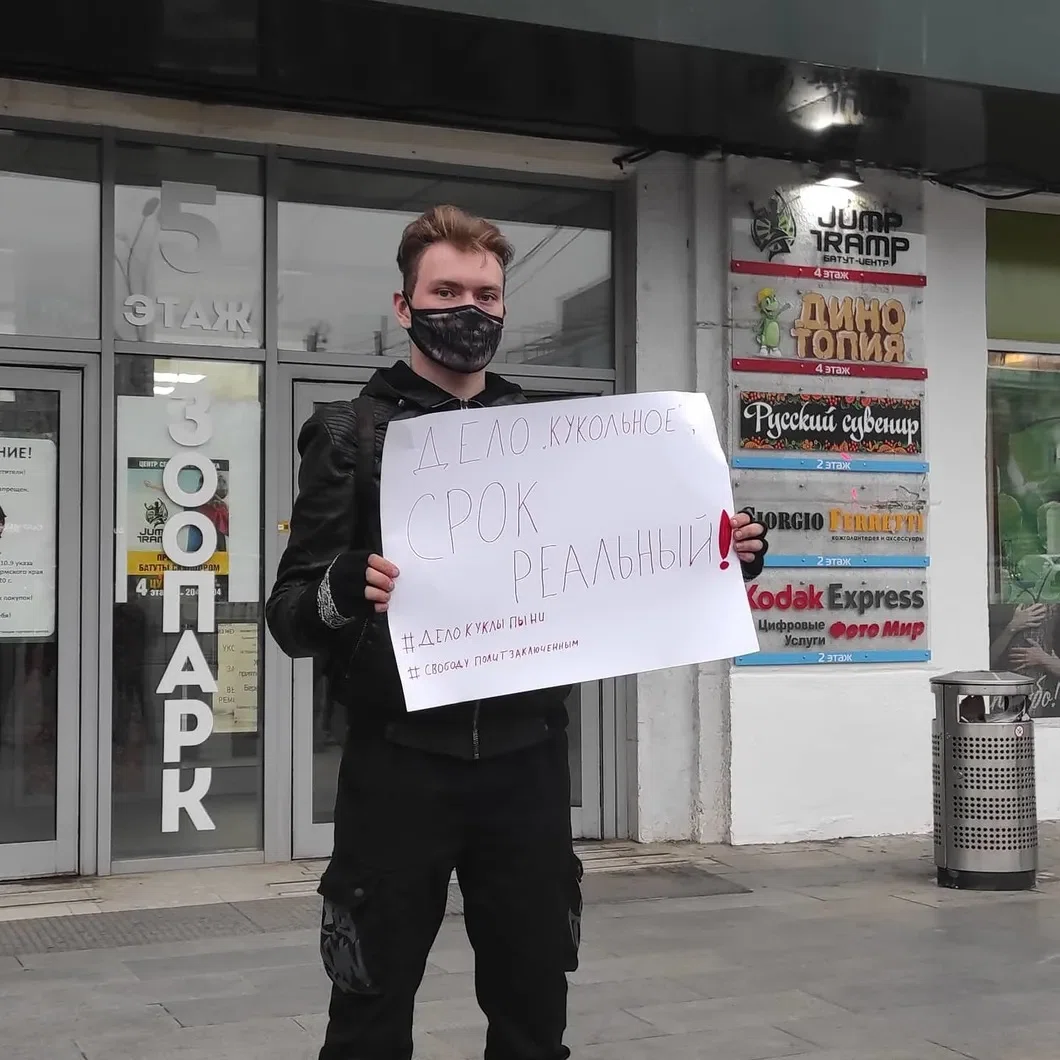 В Перми прошли пикеты в поддержку фигурантов дела «куклы Путина» Александра Шабарчина и Данилы Васильева, осужденных на два года колонии и на год условно соответственно за то, что они сняли ролик о манекене с лицом президента России.