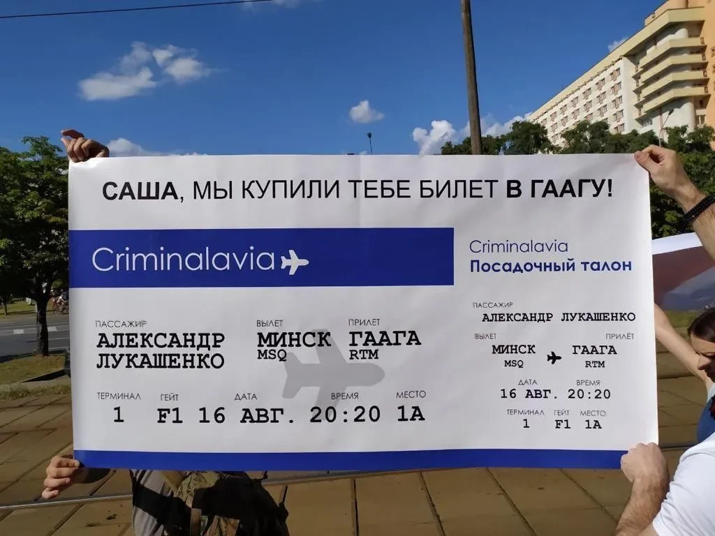 И плакаты, их тысячи. В основном в духе «Вы нас даже не представляете», знаменитого мема Болотной. «Гэта усе фаташоп» — реакция на нелицеприятные высказывание Лукашенко о протестующих. «Я не наркоман, я художник» — о том же. «Мне чизбургер, маленькую картошку и нового президента!», билет в Гаагу, приглашение в сумасшедший дом… Больше всего это напоминает монстрации, которых, кстати, в Беларуси никогда не было. Полноценных.