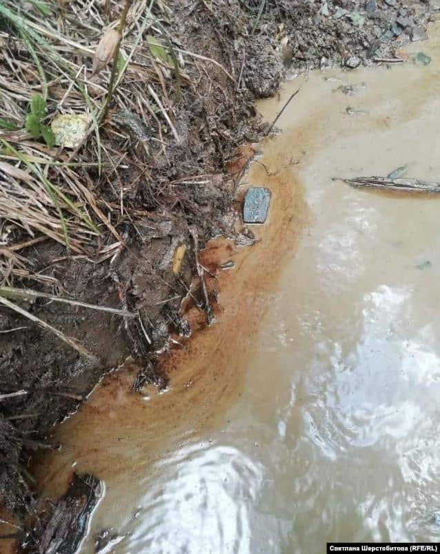 – Нас просто собрали и повезли, уже на месте сказали: вот, тут утечка, будете устранять. Это было где-то через неделю после того, как авария случилась, нефть уже не текла потоком, от неё шлейф на земле был. И по нему сделали "искусственную речку" – канаву примерно полметра глубиной и по ней пустили поток воды насосами из ручья, чтобы нефть стекала в озеро. Наша задача была просто стоять вдоль этого потока и следить, чтобы затора в нём не было, то есть, если видишь, что нефть не проходит, лопатой её сгрести, чтобы она дальше проходила, и если "борта" земли с нефтью остались, этот кусок земли с нефтью лопатой отрубать и в поток кидать. Сливалось это все в озеро – не в резервуар какой-то специальный, а просто в озеро, только по кромке сорбент какой-то был раскидан, – говорит Виктор Князев.