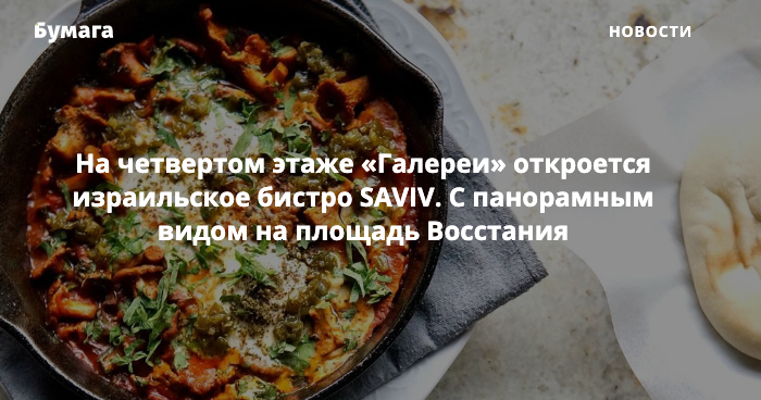 Команда израильского бистро SAVIV в ноябре откроет второе заведение, которое разместится на четвертом этаже «Галереи». Об этом сообщает «Собака.ru».