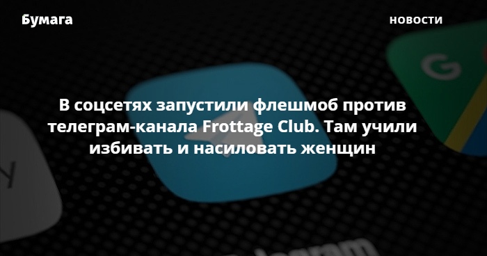 В твиттере запустили флешмоб против телеграм-канала Frottage Club, в котором рассказывали, как выбрать жертву изнасилования. Люди пишут посты с тегом #фроттажподсуд, отмечая в них аккаунт генпрокуратуры.